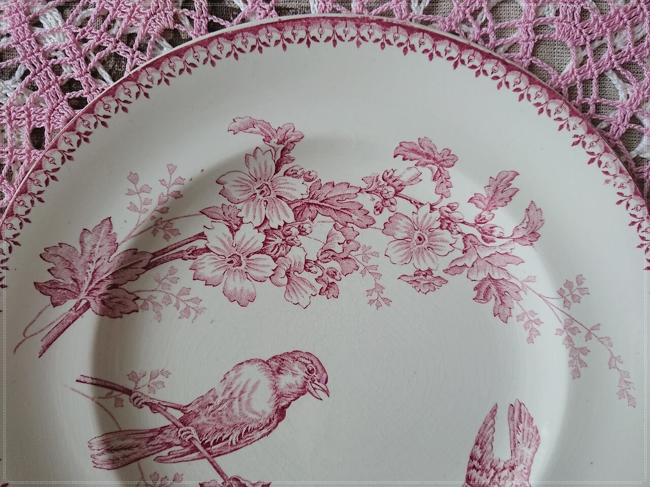 二羽の小鳥とお花の絵柄が美しく